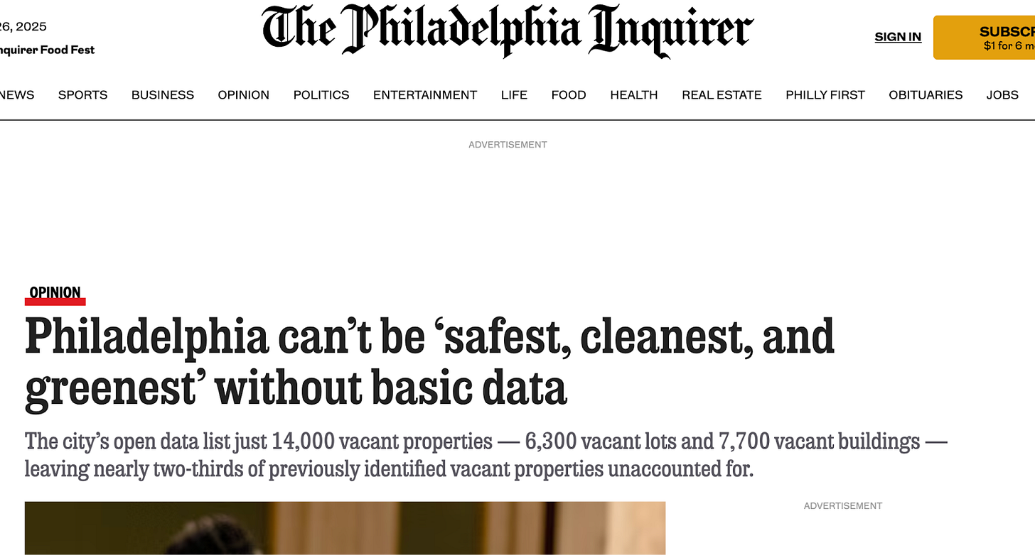 Baltimore is hardly alone. Philadelphia has also been battling the same issue, just look at this scathing headline in the Philadelphia Inquirer. I have heard from other city officials that they are concerned with their city’s ability to track vacancy.