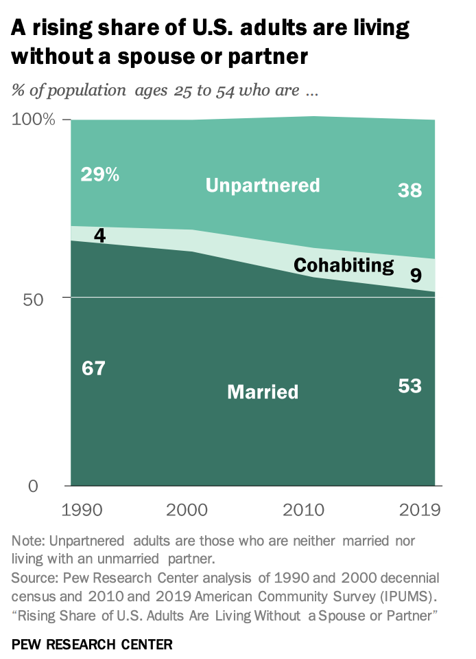 Household structure has also shifted. Marriage rates have declined, coupling patterns have changed, and a growing share of adults live without a spouse or partner. This increases the number of households relative to population and changes residential preferences. Single adults are more likely to locate in urban areas, where jobs, services, and social networks are closer together.